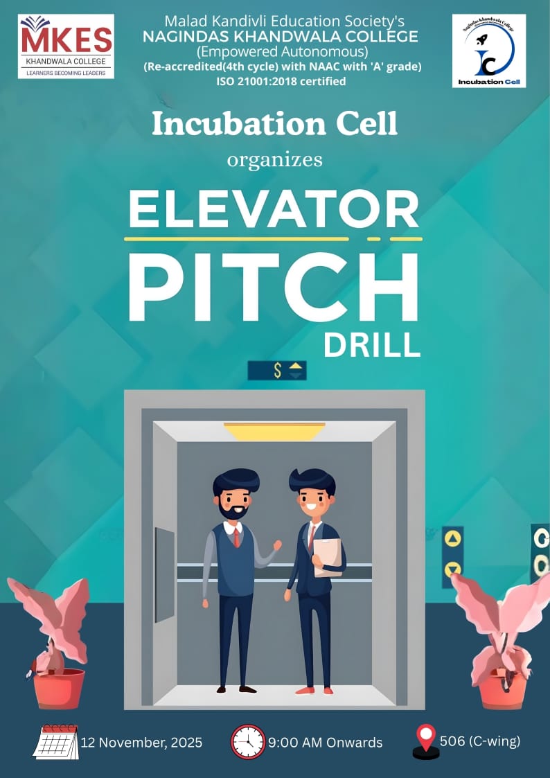 • - Elevator Pitch Drill organized by Incubation Cell on 12th November 2025 at 9:00am onwards in 506(C-wing) Brochure