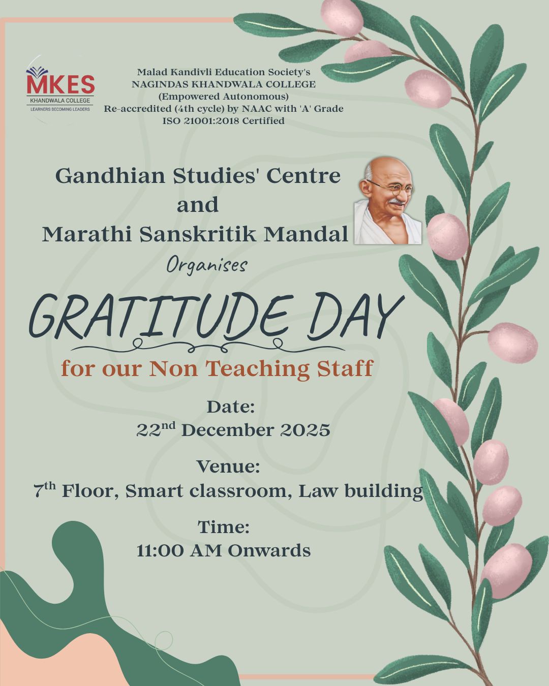 • -GSC and Marathi Sanskritik Mandal organises Gratitude Day for our Non-Teaching Staff on 22nd December 2025 at 11:00am Brochure