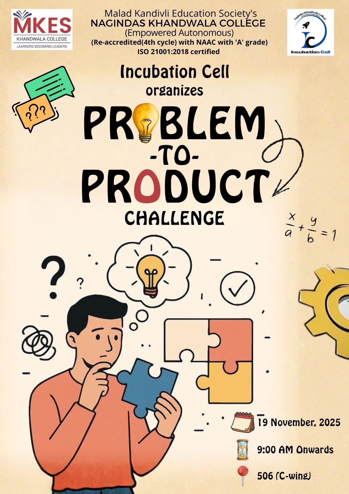 • - Problem-to-Product Challenge organized by Incubation Cell on 19th November 2025 Brochure