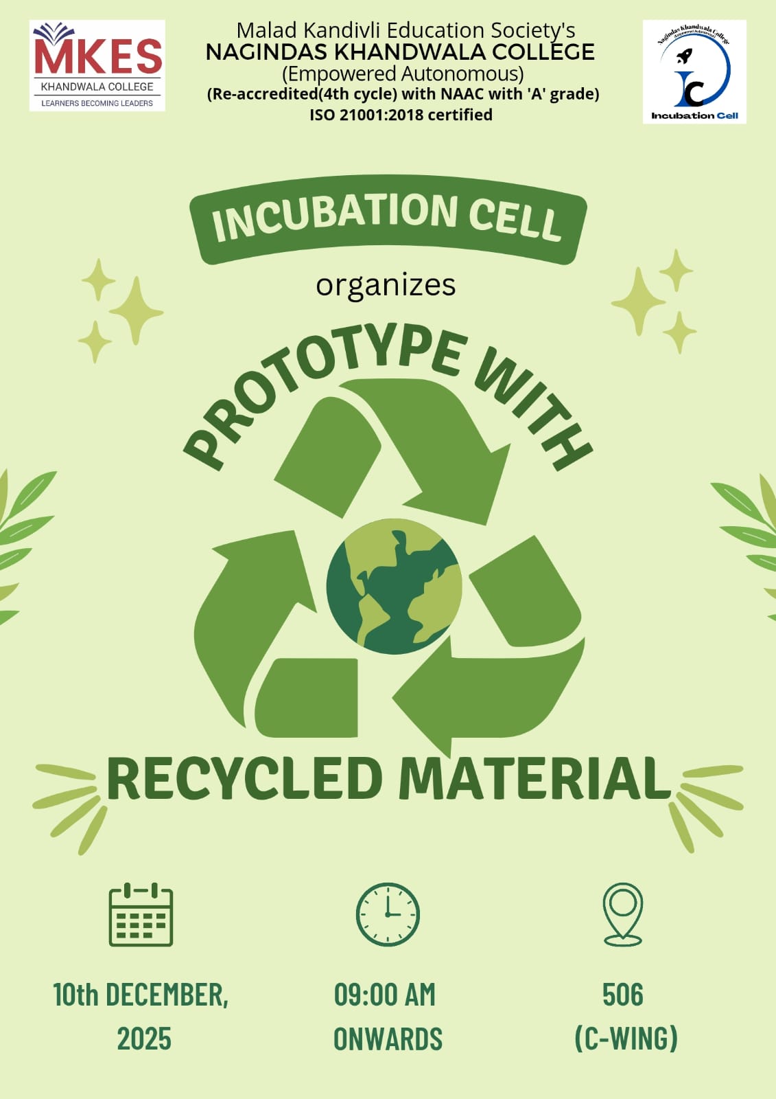 • - Prototype with Recycled Materials organized by Incubation Cell on 10th December 2025 Brochure