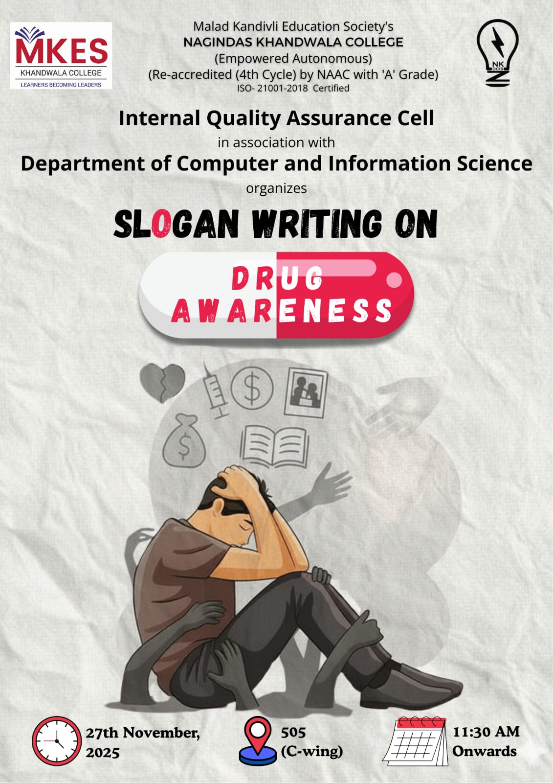 • - Slogan Writing on Drug Awareness organized by DCIS on 27th November 2025 Brochure