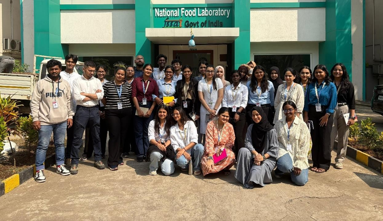 The students of Integrative Nutrition and Dietetics visited the National Food Laboratory (NFL) of the Food Safety and Standards Authority of India (FSSAI). The visit, aimed at bridging theoretical knowledge with practical exposure, provided the students with a firsthand understanding of food safety, quality control, and laboratory processes critical to public health and nutrition.